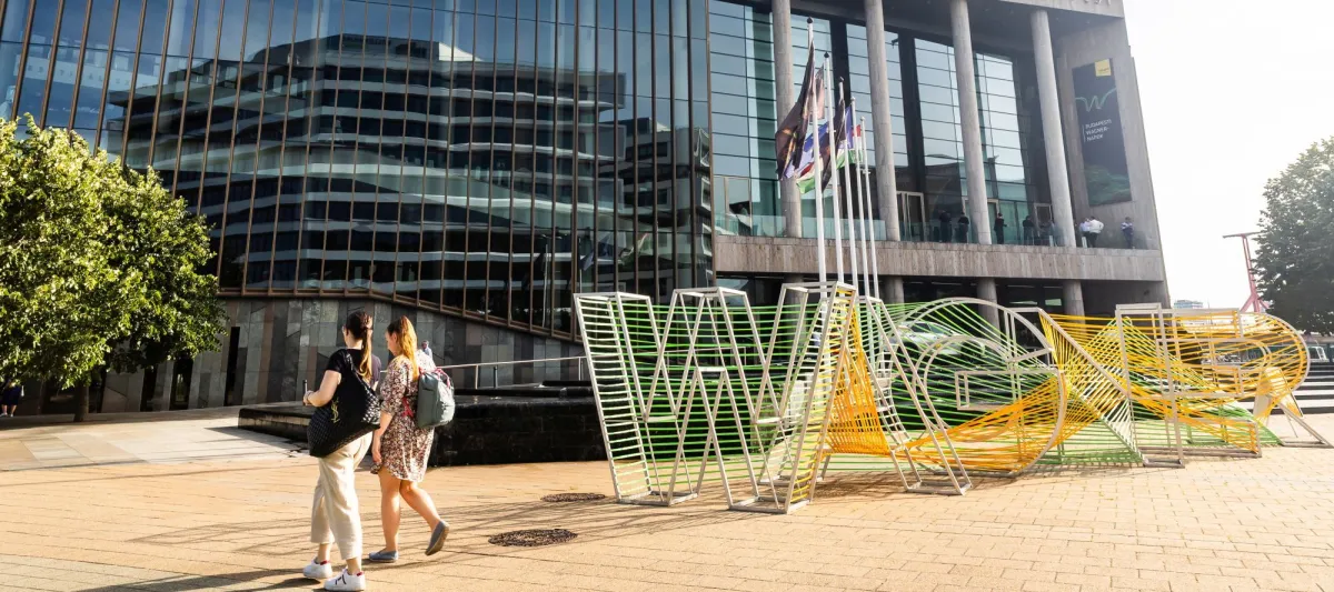 As in previous years, we have added new surprises to make this Budapest Wagner Days festival a memorable one. One of these is a unique Wagner installation created as part of Müpa Budapest's strategic collaboration with the Moholy-Nagy University of Art and Design and based on the ideas of graphic design student Dániel Dublecz. In colour and shape, the bands connecting the two-metre-tall metallic letters evoke the images from the festival's new award-winning public image campaign, which was created with sound analysis software.