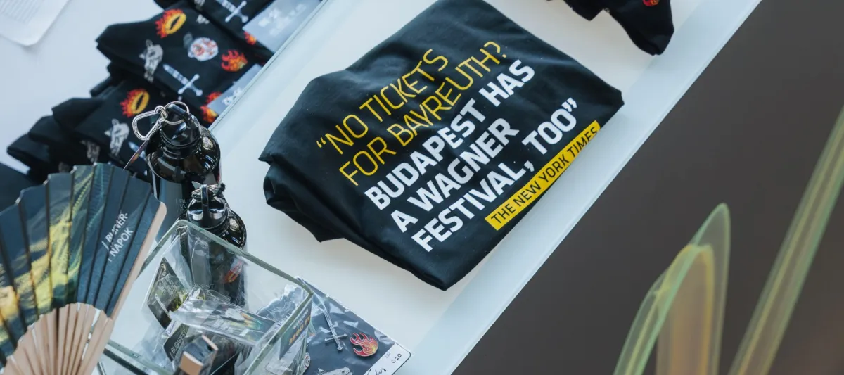 Discover the Budapest Wagner-days merchandise available at Vince Bookshop: wear the highly praising words of the prestigious critic of the New York Times on a t-shirt, cool yourself in the summer heat with a lovely Wagner fan, or enjoy a walk around the city all year around with a Wagner themed backpack!