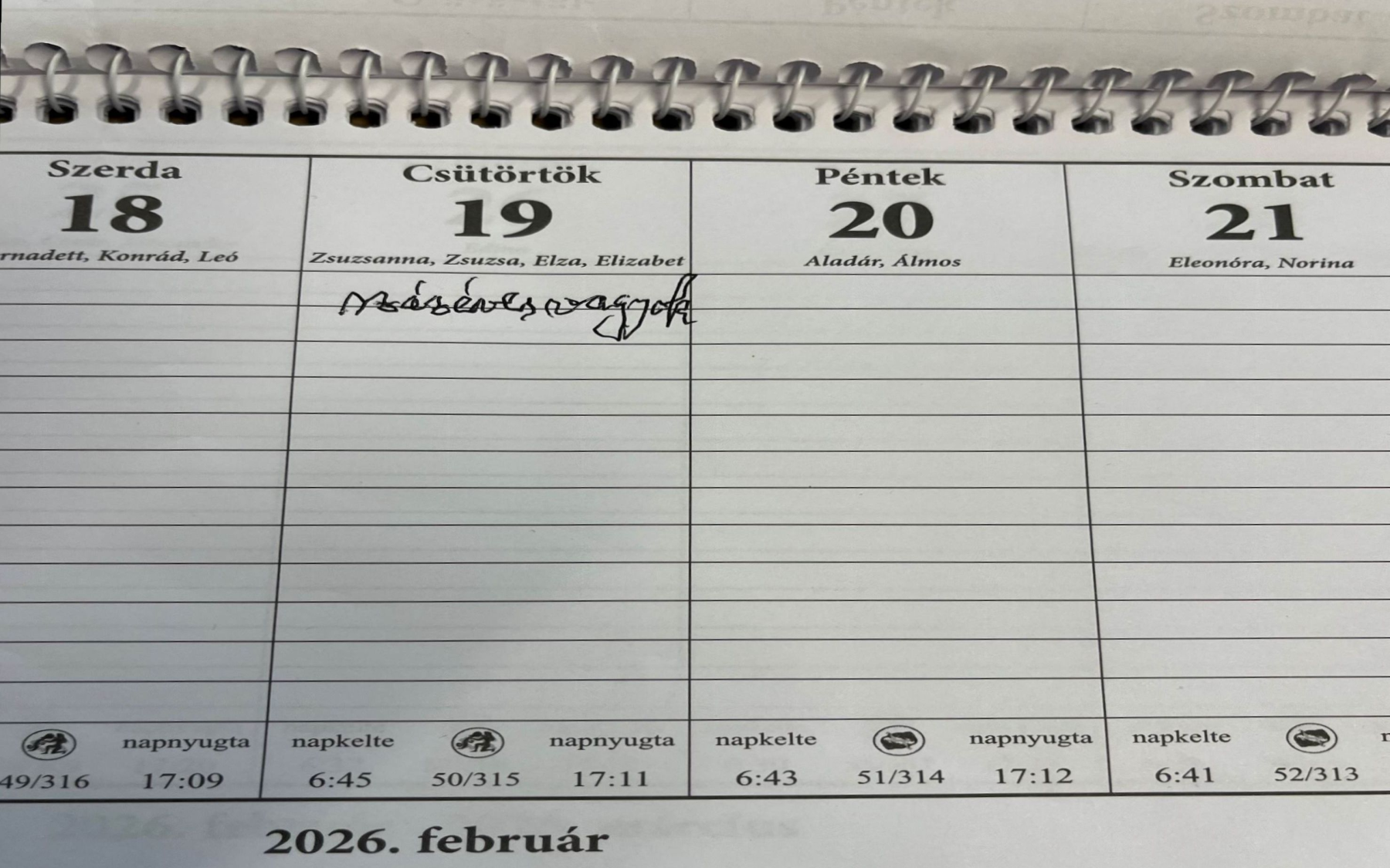 Bejegyzés Kurtág György személyes naptárában