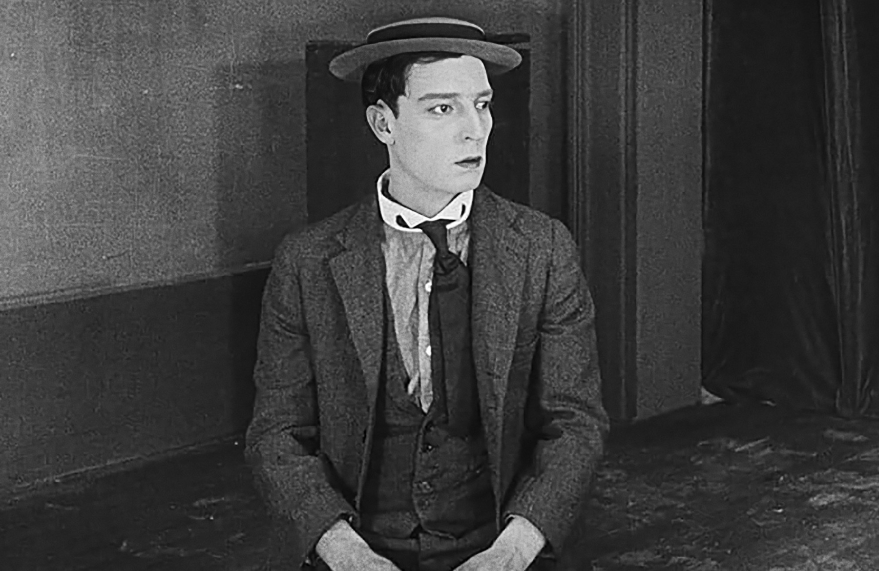 Fapofa és lapított kalap, vagyis a deadpan face és a pork-pie hat két olyan jellegzetesség, amely azonnal eszünkbe juthat a filmtörténet egyik legnagyobb nevettetője, a százharminc éve született és hatvan éve elhunyt Buster Keaton neve hallatán. Van valami komikus már abban is, ahogy ugyanolyan rezzenéstelen arckifejezéssel játszik el egy szerelmi jelenetet és egy pocsolyába hasalást.